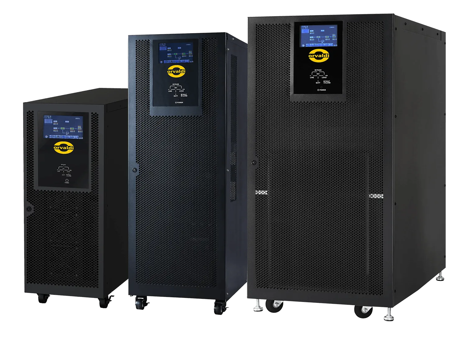 Seria ORVALDI Fortress Family to zaawansowane rozwiązanie z zakresu zasilania, zaprojektowane w celu zapewnienia niezawodności i ciągłej pracy nawet w najbardziej wymagających warunkach przemysłowych. Dzięki technologii podwójnej konwersji online, te jednostki dostarczają stabilną i bezpieczną energię, eliminując ryzyko utraty danych i uszkodzenia sprzętu. Intuicyjny interfejs i nowoczesny design sprawiają, że korzystanie z tych systemów UPS jest proste i efektywne, a ich estetyka doskonale uzupełnia współczesne przestrzenie przemysłowe.