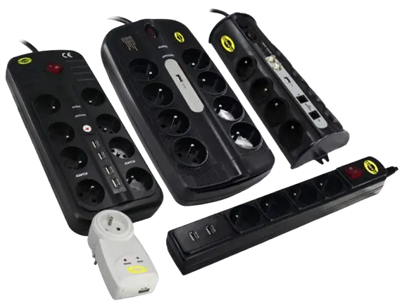- Seria ORVALDI ORV5: Podstawowa ochrona przeciwprzepięciowa z 5 gniazdami i pochłanianiem energii 210J.