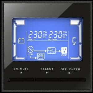 Przyjazny użytkownikowi wyświetlacz LCD zapewnia natychmiastowy dostęp do statusu UPS, poziomów obciążenia i alertów, upraszczając zarządzanie.