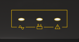 Nowoczesny i przejrzysty interfejs z trzema wskaźnikami LED, które informują o statusie UPS. Zielona dioda LED wskazuje na pracę w trybie sieciowym, pomarańczowa pokazuje pracę na baterii, a czerwona sygnalizuje awarię urządzenia. |